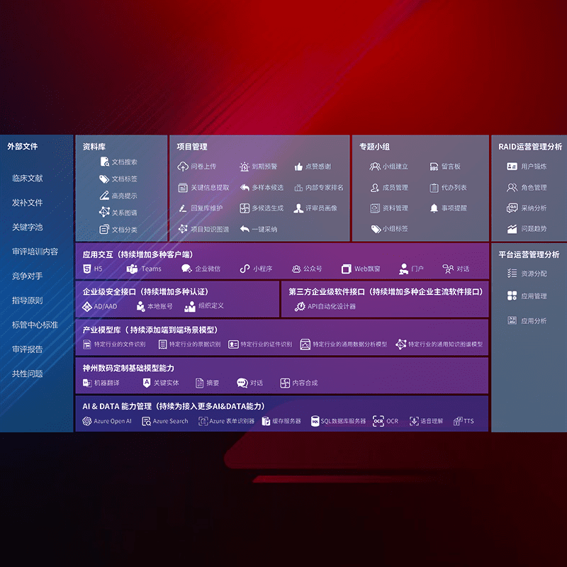 医疗器械产品上市前,,,,要熟悉严格与繁复评审标准,,整理分析监管机构指导文件中的海量信息。。。企业急需一个智能化解决方案,,,提升知识管理效率,,,,提高评审通过率,,,以提升其市场竞争力。。。